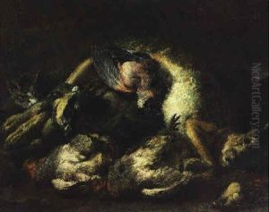 A Cat By A Dead Hare, A Duck And Other Dead Birds On A Bank