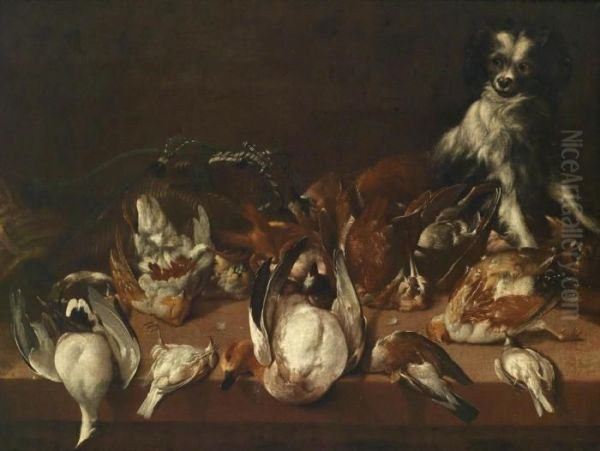 A Hunting Still Life With Shot Wildfowl And A Dog