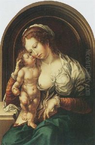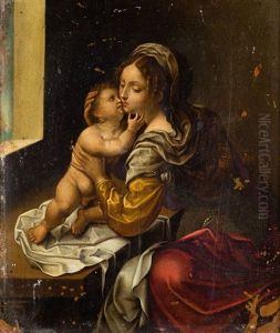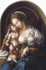 Maria Mit Dem Kind In Halbfigur, Die Sogenannte Madonna Mit Dem Gescheitelten Kind