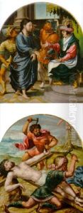 Pieta Entre Les Donateurs Et Leurs Saints Patronymes (triptych, Various Sizes)
