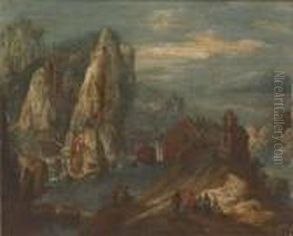 A Rhenish Landscape With Figures Resting On A Track