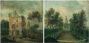 A Rhineland River Scene With Figures Resting By The Roadsidebefore A Ruined Tower Oil Painting by Jan Griffier the Elder