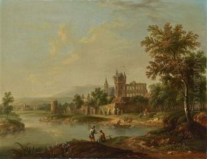 A Rhenish Landscape With Figures Loading Boats