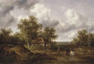 A Wooded Landscape With A Shepherd And His Herd On A Path, Near Apuddle