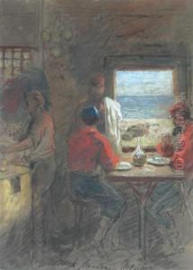 Half-length Study Of A Man In A Hat, Standing Before A Window (``respice')