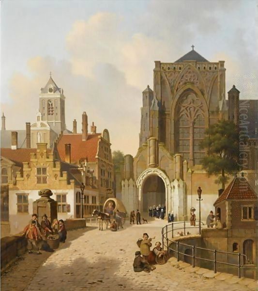 Many Figures In A Dutch Town