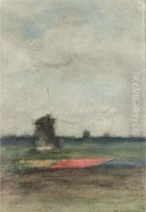 A Polder Landscape With A Windmill, Near Schiedam