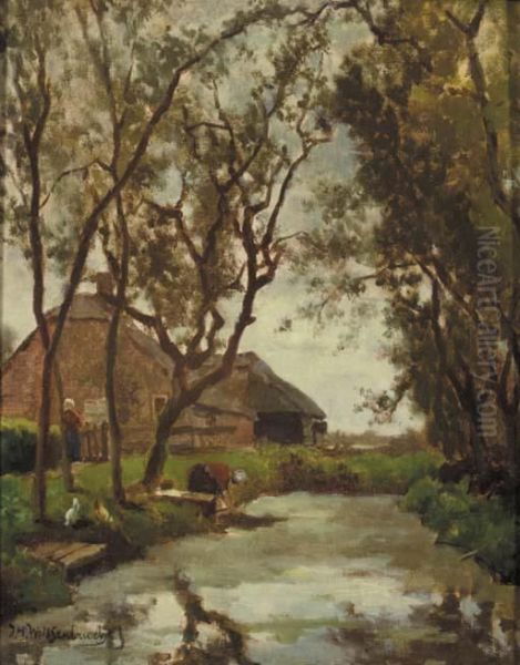 Washerwomen By A Brook Near A Farmstead