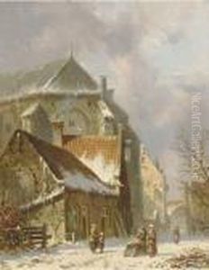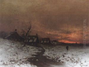 A Winter Landscape With Houses Along A Canal