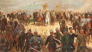 Interno Di Palazzo Con Un Sovrano Incoronato E Altre Figure