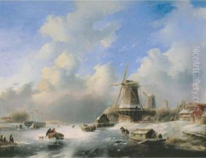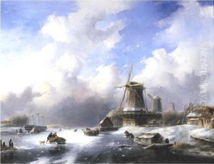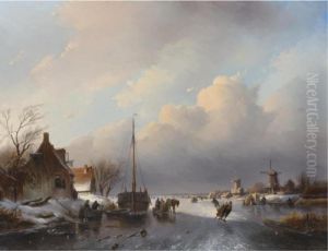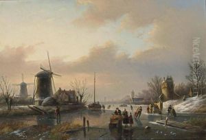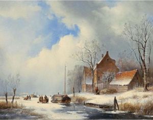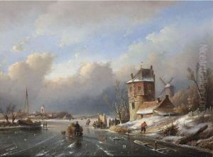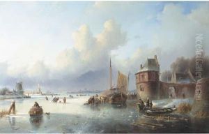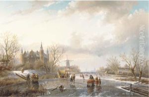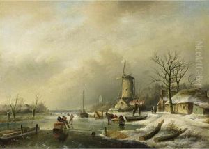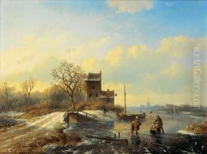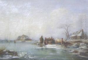 Figures On A Frozen Waterway Near A 'koek En Zopie'