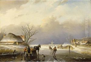 Horse And Sledge On A Frozen Waterway A A'koek En Zopiea' In The Distance