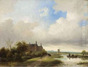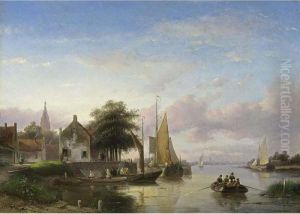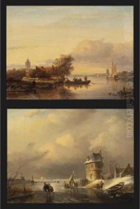 A Winter Landscape With Figures Near A 'koek En Zopie'; A Summer Landscape With Boats On A River (a Pair)
