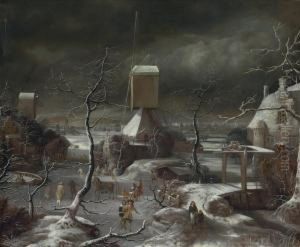 A Winter Landscape With Skaters And Horse-drawn Sledge By Windmillon Frozen River
