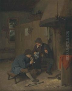 Peasants In An Interior Music Making And Smoking