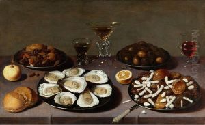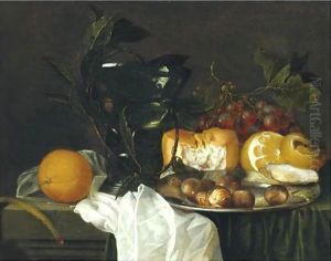 Bring the timeless beauty of Jan Jansz van de Velde's Still life of peeled lemon with chestnuts on a pewter dish, with oysters, wine glass and another lemon, on a table into your home with a handmade oil painting reproduction. Carefully recreated on canvas by skilled artists using traditional techniques, this piece captures the delicate brushwork, subtle light, and vibrant color of the original masterpiece. With museum-level quality and rich texture, it brings elegance and artistic depth to any space. Enjoy free shipping and make this masterpiece a part of your personal collection.