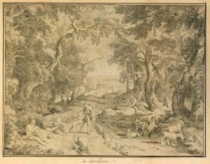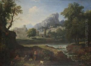 An Extensive Italianate Landscape With Figures Beside A River