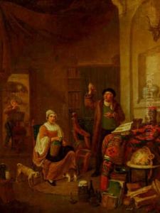 Peasant Woman Selling Goods To Villagers Gathered In A Tavern Interior