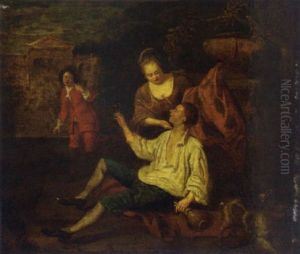 A Courtyard In A Town With A Mussel Seller And Other Figures