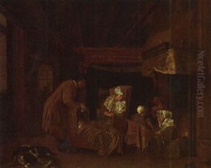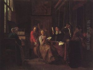 Scene D'interieur Hollandais Avec Un Professeur De Clavecin