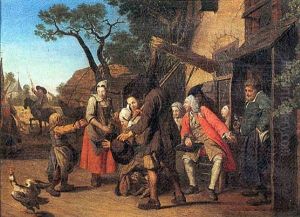 A Wedding Dance: An Interior With Peasants Dancing To The Music Of A Fiddler And A Cellist