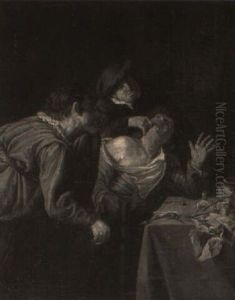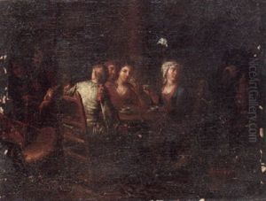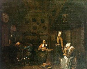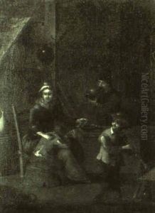 Peasants Drinking In A Kitchen Interior