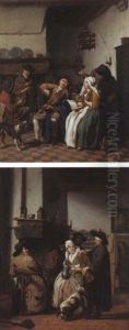 The Interior Of A Brothel With A Serving Maid, Pouring Wine...