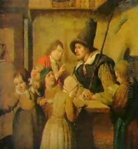 A Tabagie Gathering Of An Artist Showing His Drawings