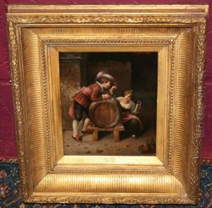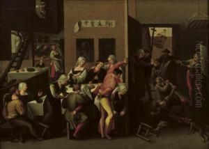 The Interior Of A Brothel With A Serving Maid Pouring Wine And Figures Carousing Around A Table