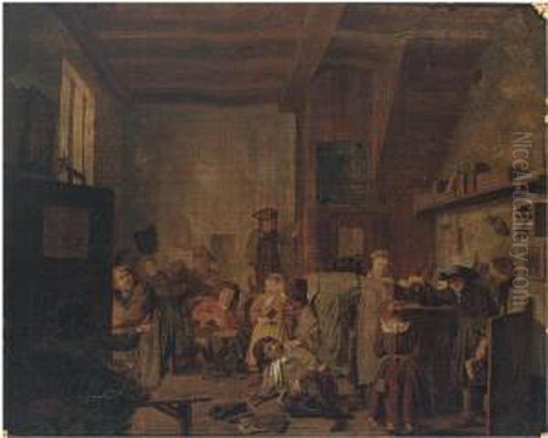 A Classroom Interior With A Teacher Reprimanding A Pupil Oil Painting by Jan Josef, the Elder Horemans