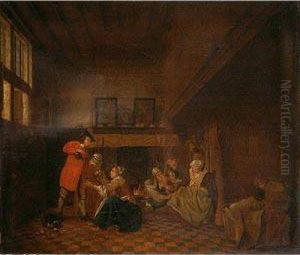 Patrician Interior With Numerous Women Anda Young Man With A Bird