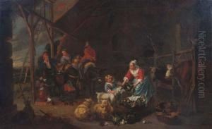 A Barn Interior With Peasants