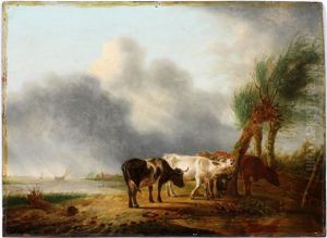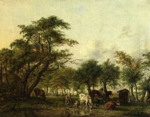 Jan Kobell was a Dutch painter born in 1778 in Rotterdam, Netherlands, who specialized in landscape and animal painting, particularly pastoral scenes that often featured cattle. His works are characteristic of the Dutch Romantic period, echoing the tranquility and idyllic landscapes that became synonymous with Dutch art of the late 18th and early 19th centuries. Kobell came from a family with a strong artistic tradition; he was part of the second generation of Kobells who were involved in the arts, his father being a notable painter as well.