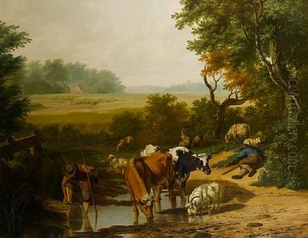 Bring the timeless beauty of Jan Kobell's A Drover Watering His Cattle At A Stream into your home with a handmade oil painting reproduction. Carefully recreated on canvas by skilled artists using traditional techniques, this piece captures the delicate brushwork, subtle light, and vibrant color of the original masterpiece. With museum-level quality and rich texture, it brings elegance and artistic depth to any space. Enjoy free shipping and make this masterpiece a part of your personal collection.