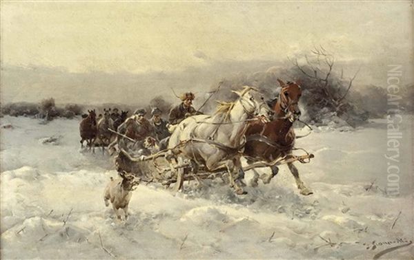 Bring the timeless beauty of Jan Konarski's Zwei Pferdeschlittengespanne In Winterlicher Landschaft into your home with a handmade oil painting reproduction. Carefully recreated on canvas by skilled artists using traditional techniques, this piece captures the delicate brushwork, subtle light, and vibrant color of the original masterpiece. With museum-level quality and rich texture, it brings elegance and artistic depth to any space. Enjoy free shipping and make this masterpiece a part of your personal collection.