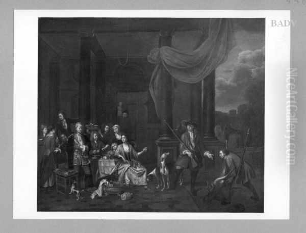 Selbstbildnis mit Familie beim Jagdfruhstuck