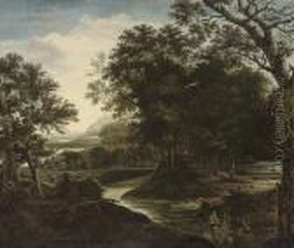 A Wooded River Landscape With A Traveller On A Track