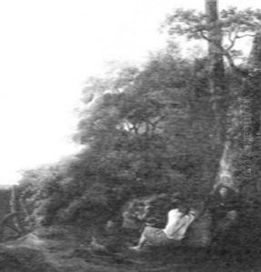 A Wooded Landscape With Peasants Resting On A Track, A Lake Beyond