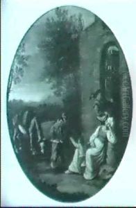 Country Folk Merry Making By A Classical Ruin In An Italianate Landscape