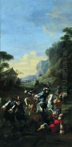 Soldiers And Peasants In Tents Outside The Walls Of A Castle