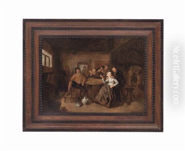 A Tavern Interior With Peasants Smoking And Merry-making