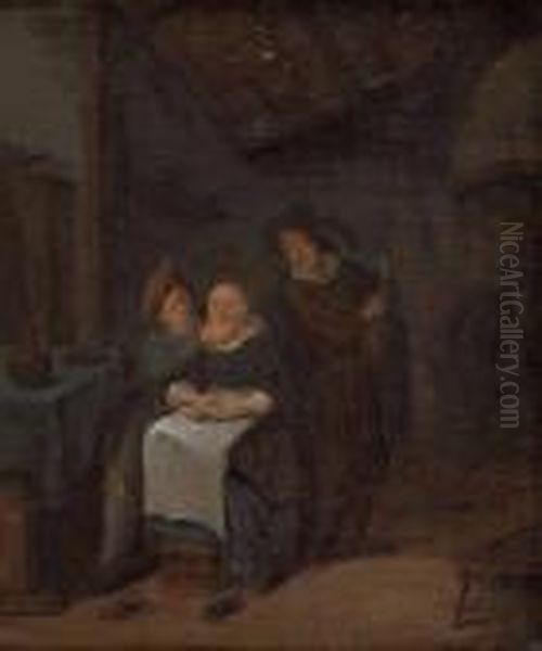 "interieur Mit Junger Frau, Liebhaber Und Geigenspieler"