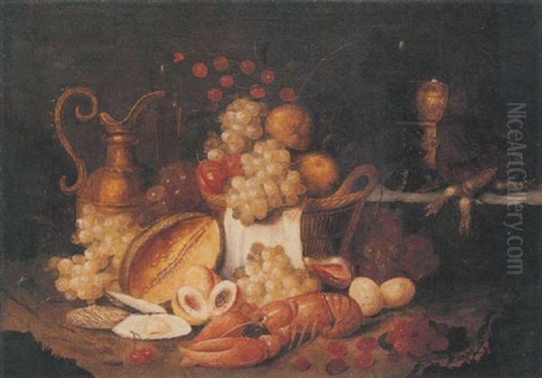 Still Life With A Lobster, Grapes, A Melon, Cherries, Plums And A Brass Jug Together With A Roemer