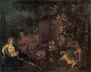 Vertumnus And Pomona, Putti Decorating A Statue Of Pan With A Swag Of Fruit, In A Landscape