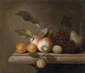 Nature Morte A La Guirlande De Fruits Ornant Une Balustrade