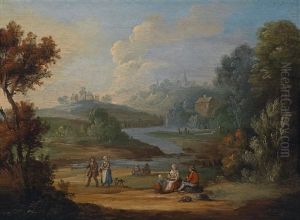 A River Landscape With Travellers And Fishermen (+ A River Landscape With A Wagonner And A Cowherd; Pair)