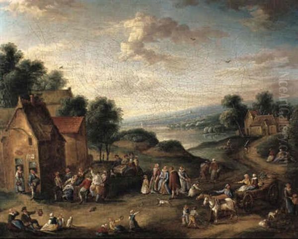 Feiernde Bauern Vor Einem Dorf
