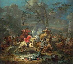 Bring the timeless beauty of Jan-Peter van Bredael the Younger's Kavallerieschlacht into your home with a handmade oil painting reproduction. Carefully recreated on canvas by skilled artists using traditional techniques, this piece captures the delicate brushwork, subtle light, and vibrant color of the original masterpiece. With museum-level quality and rich texture, it brings elegance and artistic depth to any space. Enjoy free shipping and make this masterpiece a part of your personal collection.