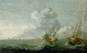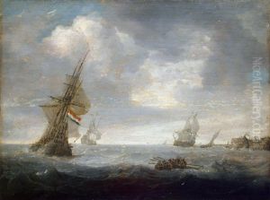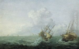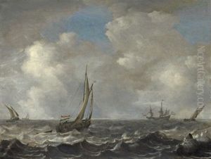 A Dutch Man O'war And Other Vessels In Choppy Waters