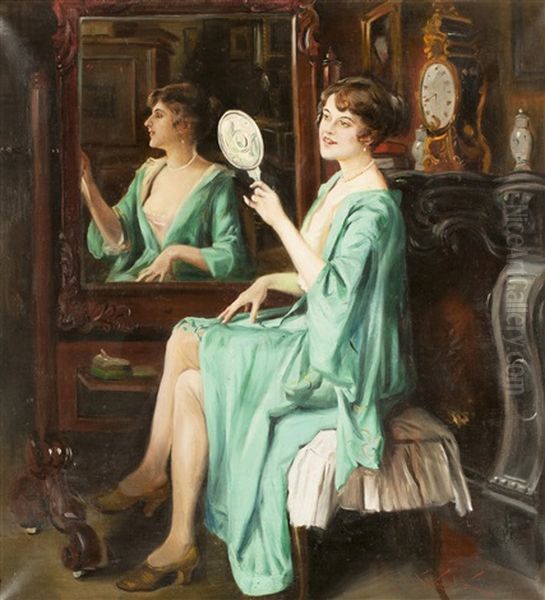 Bring the timeless beauty of Jan Skramlik's Vor Dem Spiegel into your home with a handmade oil painting reproduction. Carefully recreated on canvas by skilled artists using traditional techniques, this piece captures the delicate brushwork, subtle light, and vibrant color of the original masterpiece. With museum-level quality and rich texture, it brings elegance and artistic depth to any space. Enjoy free shipping and make this masterpiece a part of your personal collection.